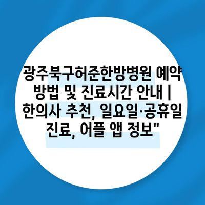 ✅ 광주북구허준한방병원 예약 방법을 자세히 알아보세요.