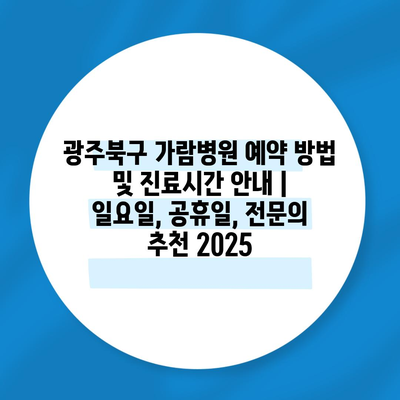 광주북구 가람병원 예약 방법 및 진료시간 공지 | 일요일, 공휴일, 전연락 추천 2025에 대해 알아보겠습니다.