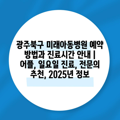 광주북구 미래아동병원 예약 방법과 진료시간 공지 | 어플, 일요일 진료, 전연락 추천, 2025년 정보 에 대해 자주 묻는 질문 TOP 5