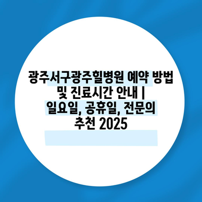 광주서구광주힐병원 예약 방법 및 진료시간 공지 | 일요일, 공휴일, 전연락 추천 2025 에 대해 자주 묻는 질문 TOP 5