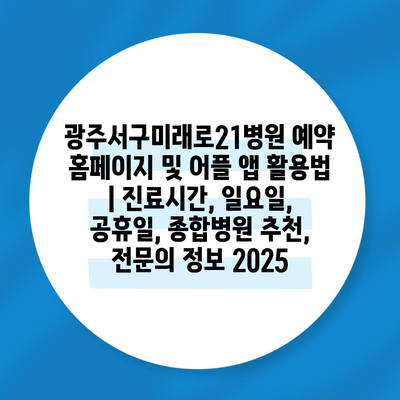 광주서구미래로21병원 예약 홈페이지 및 어플 앱 활용법 | 진료시간, 일요일, 공휴일, 종합병원 추천, 전연락 정보 2025에 대해 알아보겠습니다.