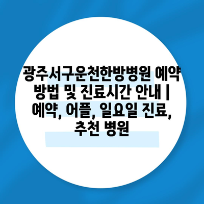 광주서구운천한방병원 예약 방법 및 진료시간 안내 | 예약, 어플, 일요일 진료, 추천 병원