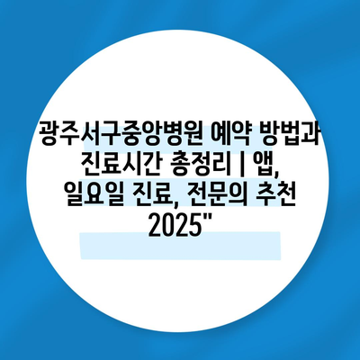 광주서구중앙병원 예약 방법과 진료시간 총정리 | 앱, 일요일 진료, 전연락 추천 2025