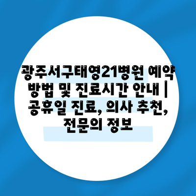 ✅ 광주서구태영21병원 예약 방법을 자세히 알아보세요.