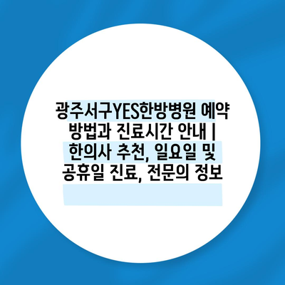 광주서구YES한방병원 예약 방법과 진료시간 공지 | 한의사 추천, 일요일 및 공휴일 진료, 전연락 정보 에 대해 자주 묻는 질문 TOP 5