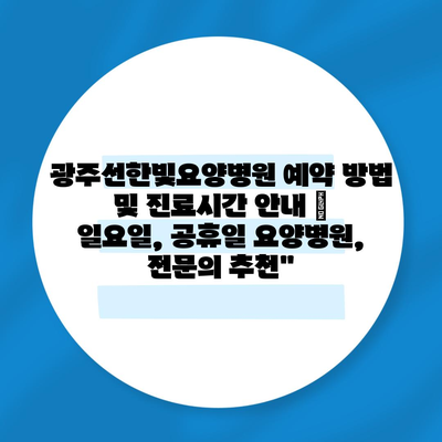 광주선한빛요양병원의 예약 방법과 진료시간을 자세히 알아보세요.