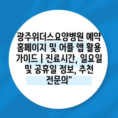 ✅ 광주위더스요양병원의 예약 방법과 진료 정보를 한눈에 확인하세요.