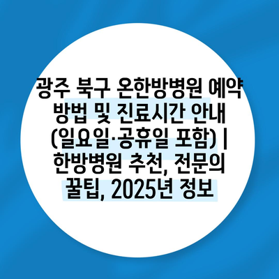 광주 북구 온한방병원 예약 방법 및 진료시간 공지 (일요일·공휴일 포함) | 한방병원 추천, 전연락 꿀팁, 2025년 정보에 대해 자주 묻는 질문 TOP 5