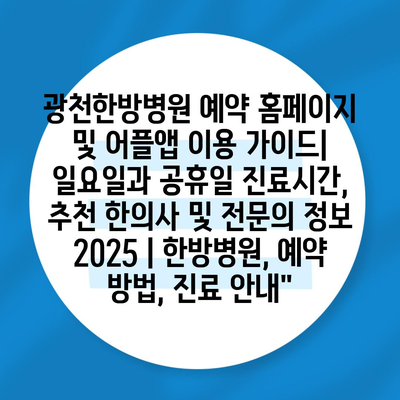 광천한방병원 예약 홈페이지 및 어플앱 이용 가이드| 일요일과 공휴일 진료시간, 추천 한의사 및 전문의 정보 2025 | 한방병원, 예약 방법, 진료 안내”