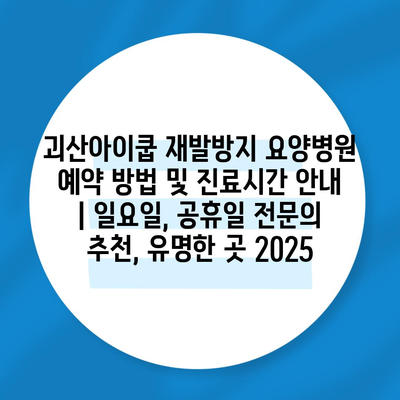 괴산아이쿱 재발방지 요양병원 예약 방법 및 진료시간 공지 | 일요일, 공휴일 전연락 추천, 유명한 곳 2025 에 대해 자주 묻는 질문 TOP 5