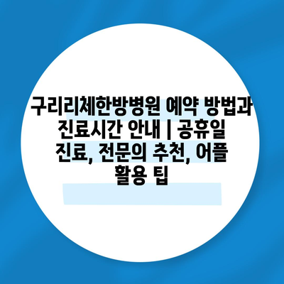 ✅ 구리리체한방병원 예약 방법과 팁을 지금 바로 알아보세요.