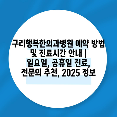 구리행복한외과병원 예약 방법 및 진료시간 안내 | 일요일, 공휴일 진료, 전문의 추천, 2025 정보