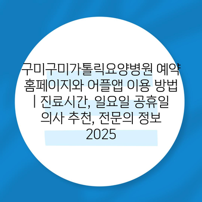 구미구미가톨릭요양병원 예약 홈페이지와 어플앱 이용 방법 | 진료시간, 일요일 공휴일 의사 추천, 전연락 정보 2025에 대해 자주 묻는 질문 TOP 5