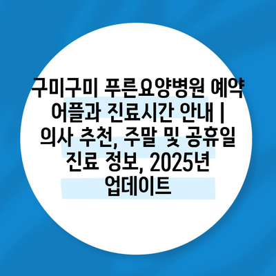 구미구미 푸른요양병원 예약 어플과 진료시간 공지 | 의사 추천, 주말 및 공휴일 진료 정보, 2025년 업데이트로 소개합니다.