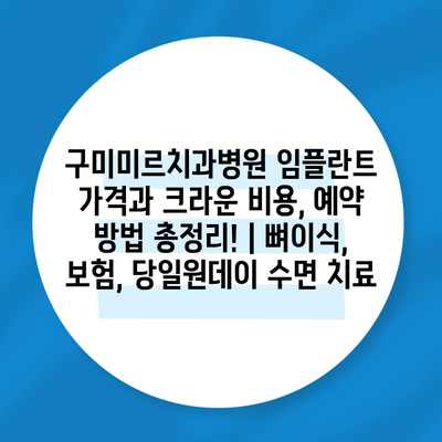 구미미르치과병원 임플란트 가격과 크라운 비용, 예약 방법 총정리! | 뼈이식, 보험, 당일원데이 수면 치료 에 대해 자주 묻는 질문 TOP 5