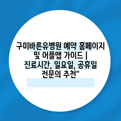 ✅ 구미바른유병원 예약 방법과 진료시간을 지금 바로 알아보세요!