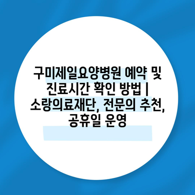 구미제일요양병원 예약 및 진료시간 확인 방법 | 소랑의료재단, 전연락 추천, 공휴일 운영 에 대해 자주 묻는 질문 TOP 5