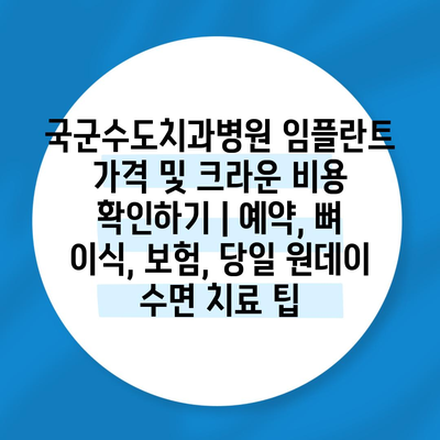 국군수도치과병원 임플란트 가격 및 크라운 비용 확인하기 | 예약, 뼈 이식, 보험, 당일 원데이 수면 치료 팁