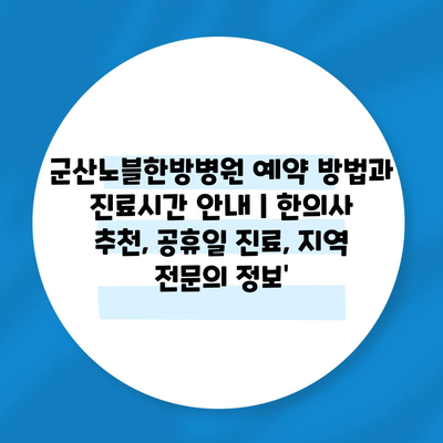군산노블한방병원의 진료시간과 예약 방법을 빠르게 알아보세요.