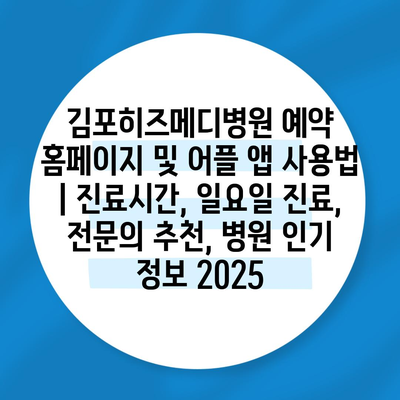 김포히즈메디병원 예약 홈페이지 및 어플 앱 사용법 | 진료시간, 일요일 진료, 전연락 추천, 병원 인기 정보 2025에 대해 알아보겠습니다.