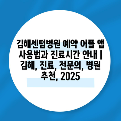 김해센텀병원 예약 어플 앱 사용법과 진료시간 공지 | 김해, 진료, 전연락, 병원 추천, 2025 에 대해 자주 묻는 질문 TOP 5