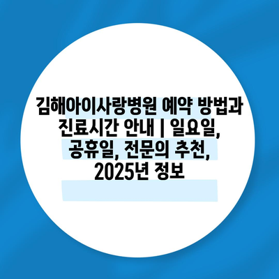 김해아이사랑병원 예약 방법과 진료시간 공지 | 일요일, 공휴일, 전연락 추천, 2025년 정보 에 대해 자주 묻는 질문 TOP 5