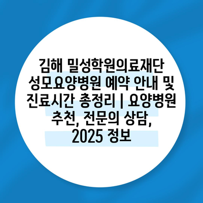 ✅ 김해 밀성학원의료재단 성모요양병원 예약 방법과 진료시간을 지금 바로 확인하세요!