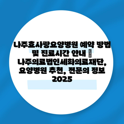 ✅ 나주효사랑요양병원의 예약 방법과 진료시간을 빠르게 알아보세요.