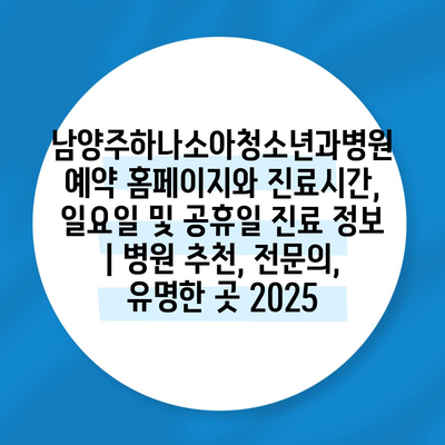 ✅ 남양주하나소아청소년과병원의 진료시간 및 예약 방법을 지금 바로 확인하세요!