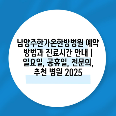 남양주한가온한방병원 예약 방법과 진료시간 공지 | 일요일, 공휴일, 전연락, 추천 병원 2025에 대해 자주 묻는 질문 TOP 5