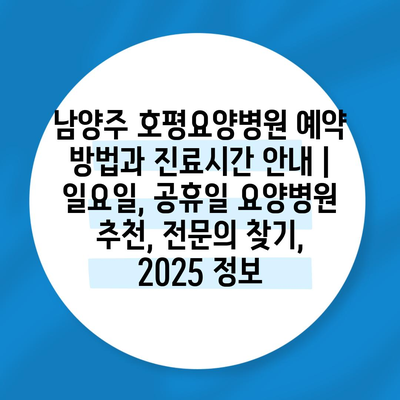 남양주 호평요양병원 예약 방법과 진료시간 공지 | 일요일, 공휴일 요양병원 추천, 전연락 찾기, 2025 정보입니다.