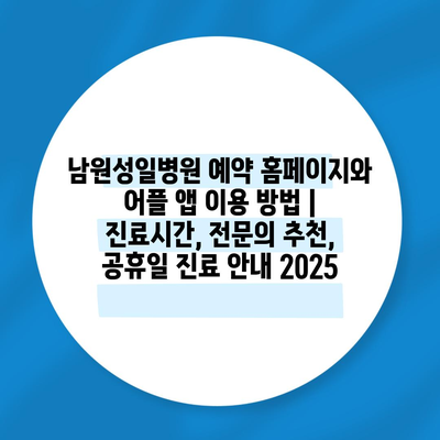 남원성일병원 예약 홈페이지와 어플 앱 이용 방법 | 진료시간, 전연락 추천, 공휴일 진료 공지 2025에 대해 알아보겠습니다.