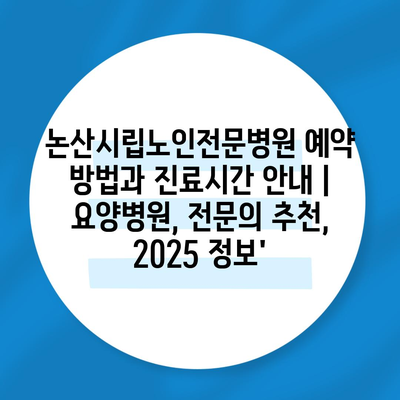 논산시립노인전문병원 예약 방법과 진료시간 공지 | 요양병원, 전연락 추천, 2025 정보’ 에 대해 자주 묻는 질문 TOP 5