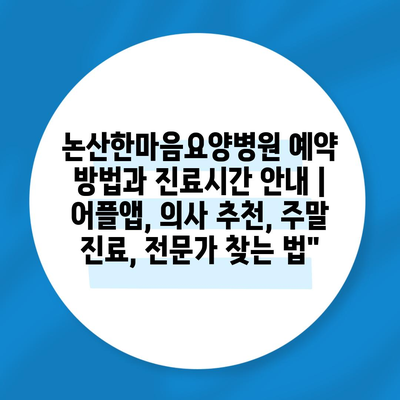 ✅ 논산한마음요양병원의 예약 방법과 진료시간을 지금 바로 알아보세요!