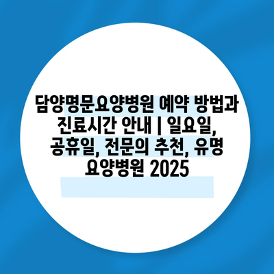 담양명문요양병원 예약 방법과 진료시간 안내 | 일요일, 공휴일, 전문의 추천, 유명 요양병원 2025