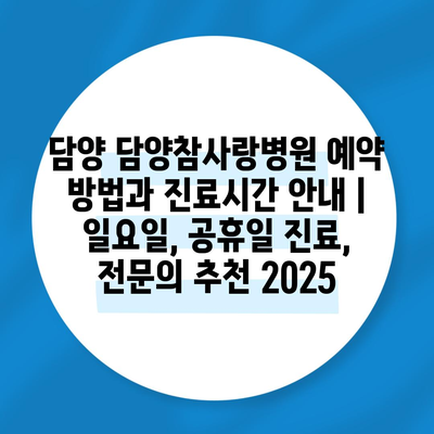 담양 담양참사랑병원 예약 방법과 진료시간 공지 | 일요일, 공휴일 진료, 전연락 추천 2025 에 대해 자주 묻는 질문 TOP 5