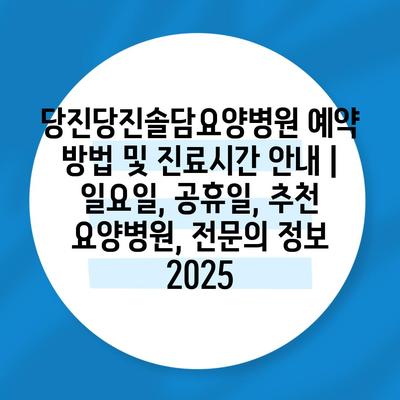 당진당진솔담요양병원 예약 방법 및 진료시간 공지 | 일요일, 공휴일, 추천 요양병원, 전연락 정보 2025에 대해 알려알려드리겠습니다.