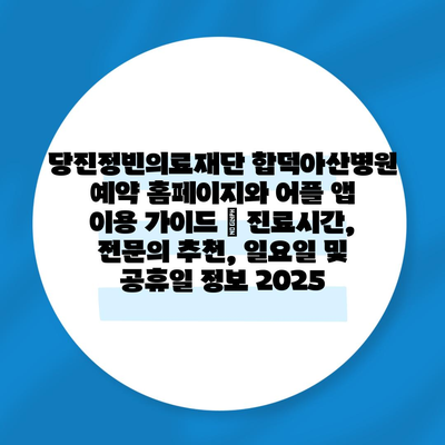 당진정빈의료재단 합덕아산병원 예약 홈페이지와 어플 앱 이용 설명서 | 진료시간, 전연락 추천, 일요일 및 공휴일 정보 2025에 대해 소개합니다.