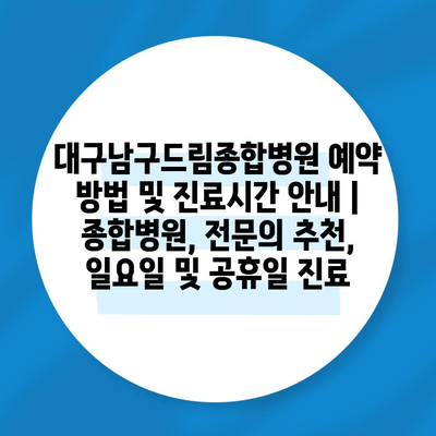 대구남구드림종합병원 예약 방법 및 진료시간 공지 | 종합병원, 전연락 추천, 일요일 및 공휴일 진료에 대해 자주 묻는 질문 TOP 5