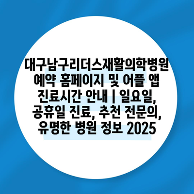 대구남구리더스재활의학병원 예약 홈페이지 및 어플 앱 진료시간 공지 | 일요일, 공휴일 진료, 추천 전연락, 유명한 병원 정보 2025 에 대해 자주 묻는 질문 TOP 5