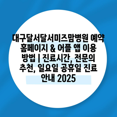 대구달서달서미즈맘병원 예약 홈페이지 & 어플 앱 이용 방법 | 진료시간, 전연락 추천, 일요일 공휴일 진료 공지 2025에 대해 알아보겠습니다.