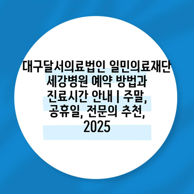 대구달서의료법인 일민의료재단 세강병원 예약 방법과 진료시간 공지 | 주말, 공휴일, 전연락 추천, 2025 에 대해 자주 묻는 질문 TOP 5