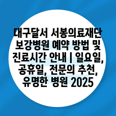 대구달서 서봉의료재단 보강병원 예약 방법 및 진료시간 공지 | 일요일, 공휴일, 전연락 추천, 유명한 병원 2025 에 대해 자주 묻는 질문 TOP 5