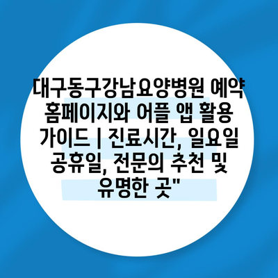 ✅ 대구동구강남요양병원 예약 방법을 자세히 알아보세요.
