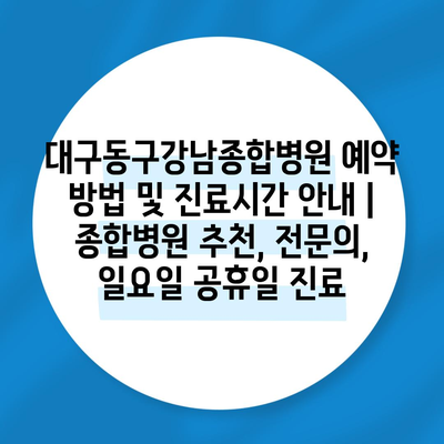 ✅ 대구동구강남종합병원의 예약 방법을 자세히 알아보세요.