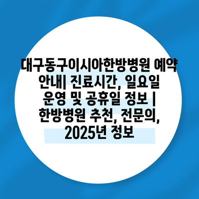 대구동구이시아한방병원 예약 공지| 진료시간, 일요일 운영 및 공휴일 정보 | 한방병원 추천, 전연락, 2025년 정보 에 대해 자주 묻는 질문 TOP 5