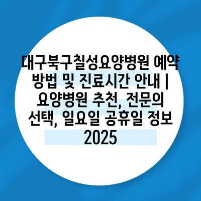 ✅ 대구북구칠성요양병원의 예약 팁과 진료시간을 알아보세요.