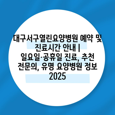 대구서구열린요양병원 예약 및 진료시간 안내 | 일요일·공휴일 진료, 추천 전문의, 유명 요양병원 정보 2025