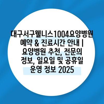 대구서구웰니스1004요양병원 예약 & 진료시간 공지 | 요양병원 추천, 전연락 정보, 일요일 및 공휴일 운영 정보 2025
