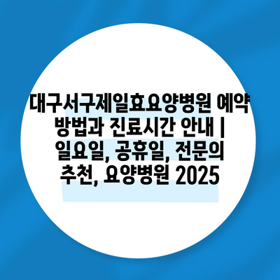 대구서구제일효요양병원 예약 방법과 진료시간 공지 | 일요일, 공휴일, 전연락 추천, 요양병원 2025 에 대해 자주 묻는 질문 TOP 5